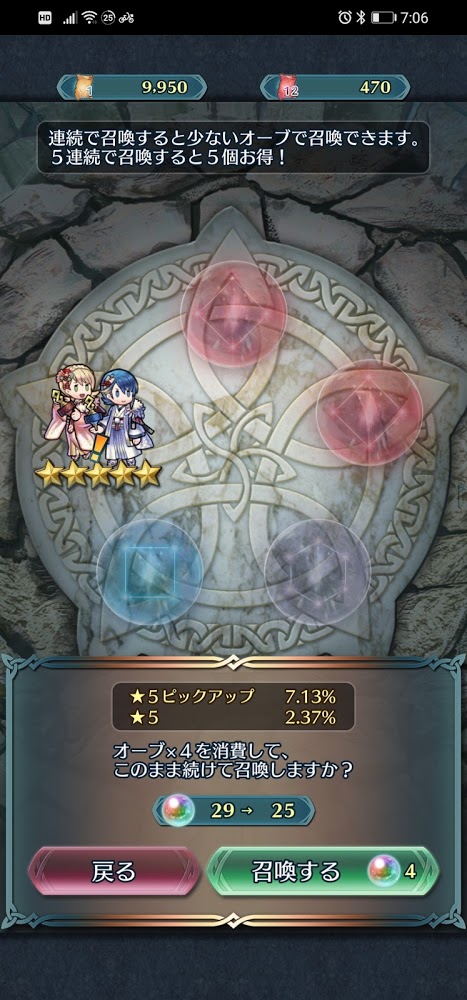 7回目も見事にハズレなので、正月から爆死する予感です。オーブの残りは57個になりました。