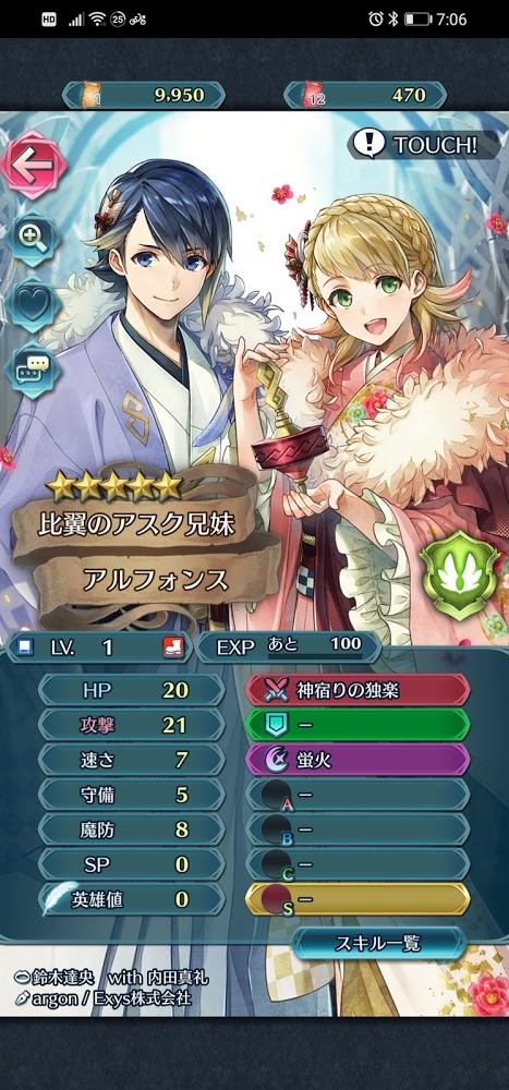 アルシャロってファイアーエムブレムヒーローズのオリジナルキャラなんですけど、全く使いみちがないので完全に空気になっていたところ、昨年の正月にいきなりアルシャロとして登場してきて、奥義発動を短縮するスキルを持っている唯一無二のキャラです。相当強いって話だったので、使ってみたいなーと思いつつも、何回引いても出なかったので、本当に助かりました。
