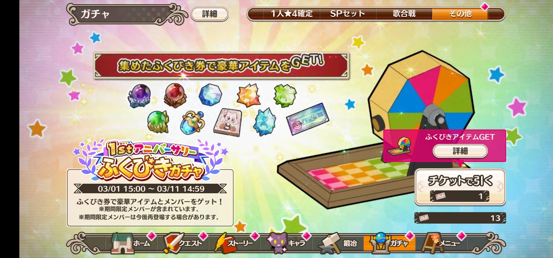 1周年記念の無料ふくびきで星4キャラが連発で出まくり!