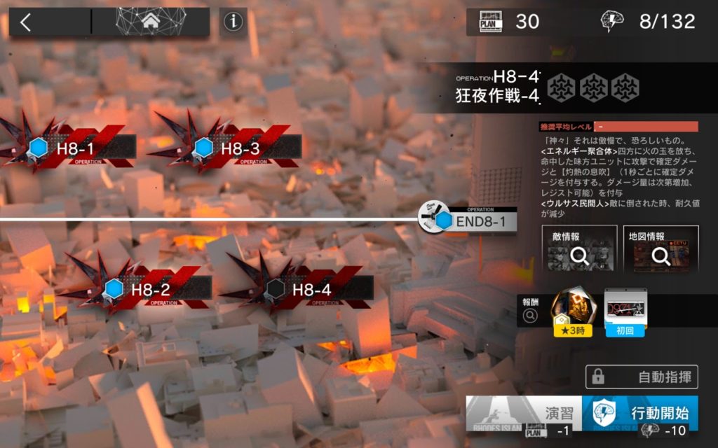 アークナイツで追加された8章なんですが、あいた時間を使って少しずつやっていました。それで、強襲も含めて残りは最後のH8-4だけになった訳ですが、このH8-4 ってステージは直感的なクリアができなくなっています。これ、初見でクリアした人って殆どいないのではないでしょうか?、アークナイツは直感的にクリアしていくのが楽しかったんですけどこれは無理ですね。