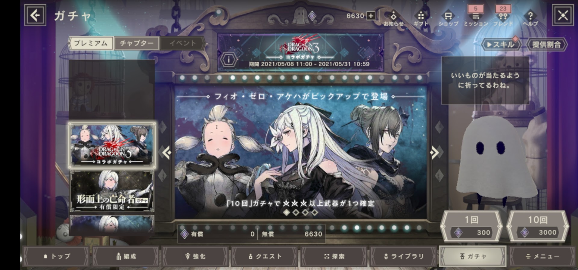 リンカネーションで開催中のDOD3コラボイベントに合わせて★4ゼロがピックアップされたコラボガチャが開催されています。前回、溜まっていたジェム、受け取っていないジェム等すべてをかき集めて162連分回したんですが、★4は沢山出て来たものの、★4武器ばかりで、なんとかDOD3コラボアネハが3体出たものの、目的のゼロが出てこないままで完全に爆死しました。