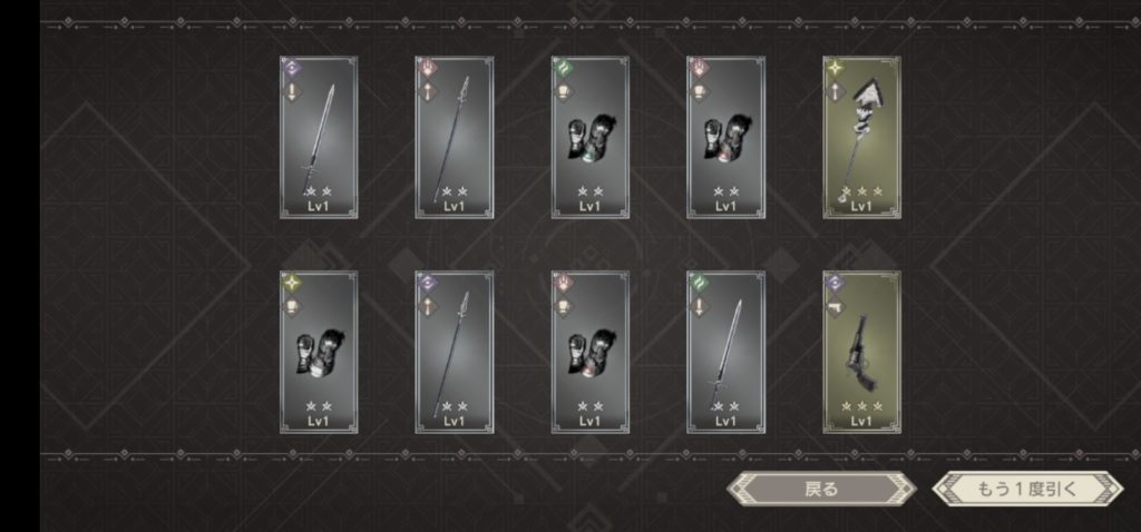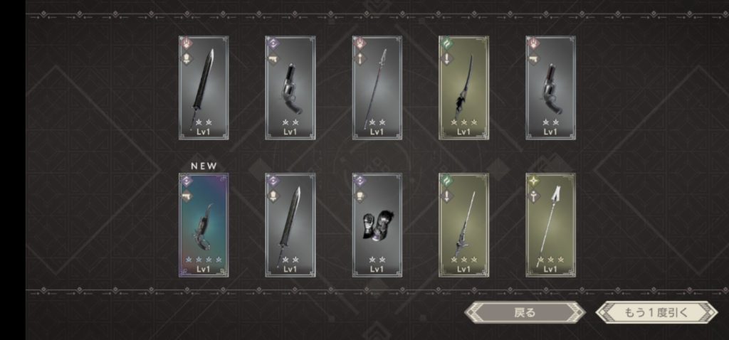 前回の162連分回した結果。溜まっていたジェムすべてなくなってしまいましたが、また43連分回すジェムが溜まっているので回していきます。※まだ受け取っていないジェムを含めます。アネハはデザインはいいんですけど、A2と比較するとあまり良いところがないですし、トゥの大剣も攻撃をしたら自分が毒になるし攻撃力も低いので、2凸してもあまり使えそうになさそう?