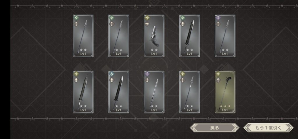 !?出てきたのは・・・、またすり抜けでした。使わない武器ばかりが出てますね。残り33連になりましたので、なんとかゼロが引ければ200連使った意味が出てきます。