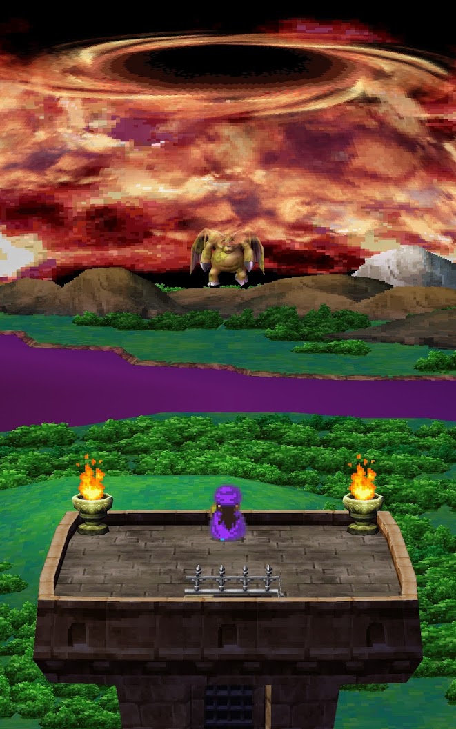 ビアンカと結婚をした後、しばらくストーリが進んでいくと、ビアンカと結婚式を上げた街にブオーンという怪獣みたいな巨大な敵が襲撃してきます。ブオーンについてもすっかり忘れていましたが、この顔を見て思い出しました。スーパーファミコン版では相当な強敵であり、倒すのに相当苦労した記憶がありますが、流石に倒し方までは覚えていないです。