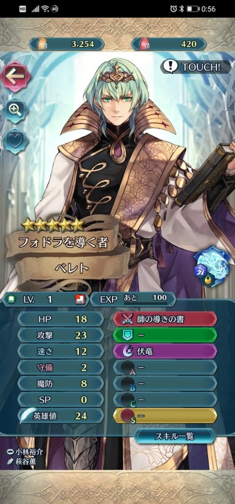 最近は、かなり放置気味のファイアーエムブレムヒーローズですが、ログインしてみたら、伝承英雄召喚ガチャが開催されていました。今回の伝承英雄はフォドラを導く者ベレトとのことですが・・・。あなたは一体誰ですか?、このキャラは全く知らないですね。キャラクターデザインは恐ろしくかっこよいと思いますが、全く知らないキャラなので、正直良くわかりません。