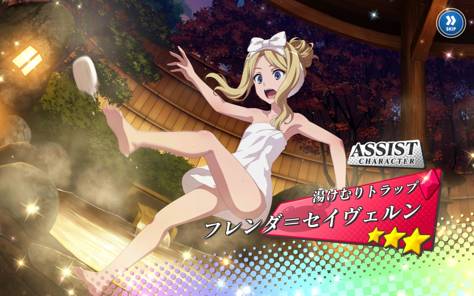 予想通りに温泉フレンダでした。これ、バトルキャラだったら、最高の神引きだったのに・・・、何故アシストに?、性能はよくわかりませんが、一応、限定が引けてよかったです。