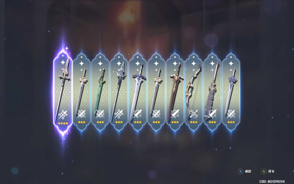 原石が1600貯まったので、早速10連回してみれば、残念ながら★4確定の演出でした。これで70連で心海はおろか、★5すら未だ無しです。最悪でもキャラが出ないと厳しいですね。