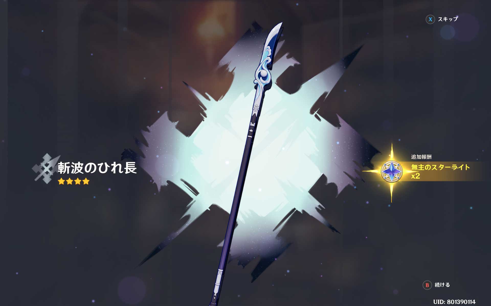 知らない弓が出て終わるのかな?と思っていたら、なんと★4武器がもう1個出てきました。斬波のひれ長って槍ですね。この槍も見たことがないです。限定武器なのかな?