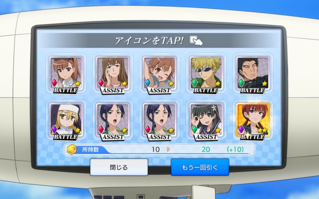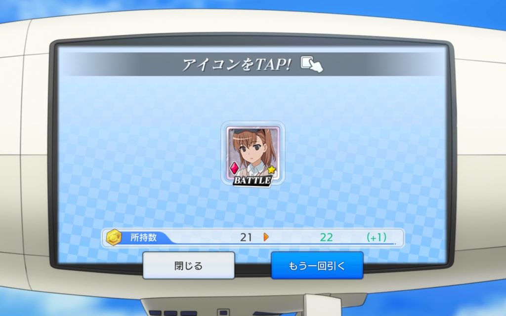 20連回したけど、虹色ゲコ太は出て来ないし、すり抜けの星3すら出てきません。ここで、ピンクチケットを使って単発で回してみます。とあるIFでよくあるんですけど、20連、30連回して、全く虹色ゲコ太、金色ビリビリ昇格演出が出なかった場合、単発でピンクチケットを使って引けば、ピックアップが出ることがよくありました。まあ、タマタマだとは思いますけど。