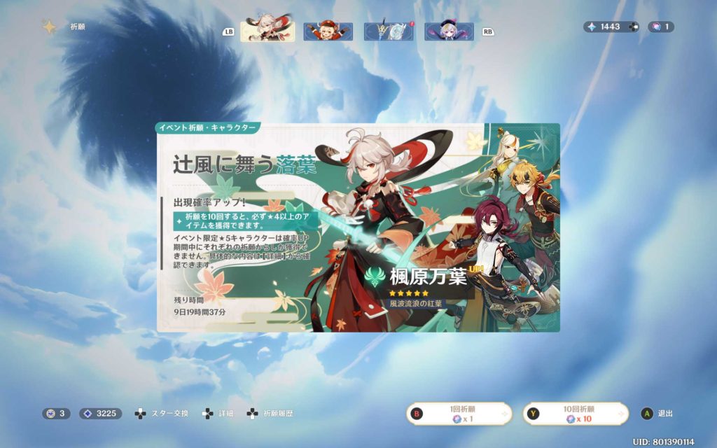 【原神】辻風に舞う落葉!楓原万葉ガチャ!追加で60連目!爆死?