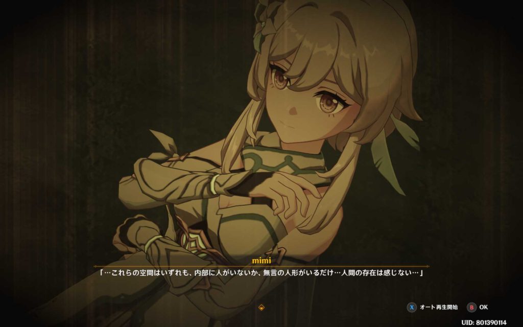 多分、原神の開発メンバーがシュタインズ・ゲートが好きというか?、影響されているというか、タイムリープって概念がここで初めて出てきて、突然出てきた謎の少女キャラが鈴羽と全く同じ口調で話をしてくるので、これ?シュタインズ・ゲートと原神のコラボなの?って思いました。それで、声優さんも選んでいるのか?、意図的に鈴羽と似たような声で喋ってますよね?