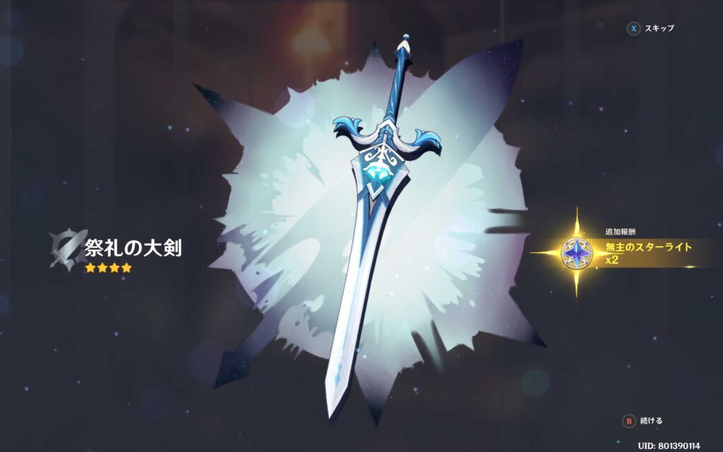 ええ?、まだ出るの?更に祭礼の大剣まで出てきました。今回の70連って凄い引きしているのでは?、まだ他にも星5武器は出るかな?