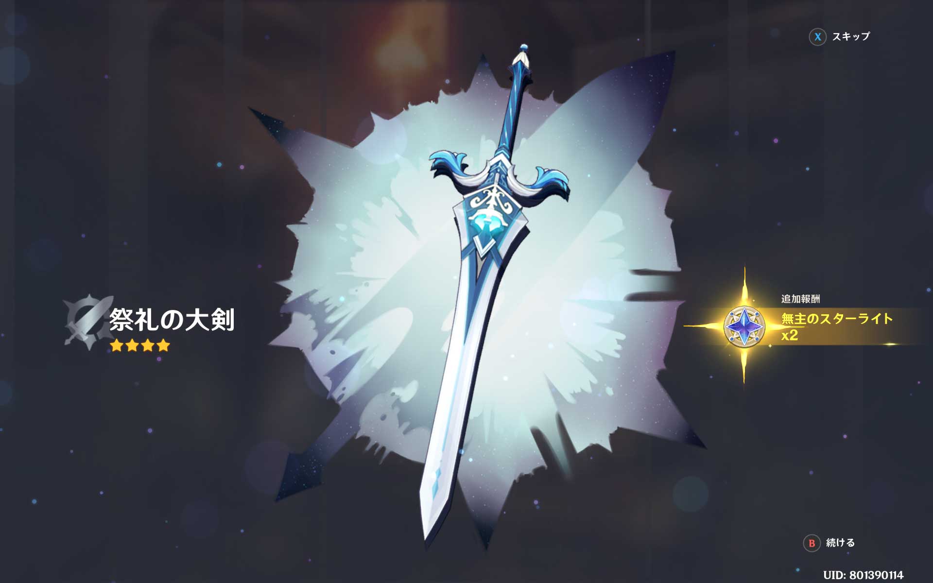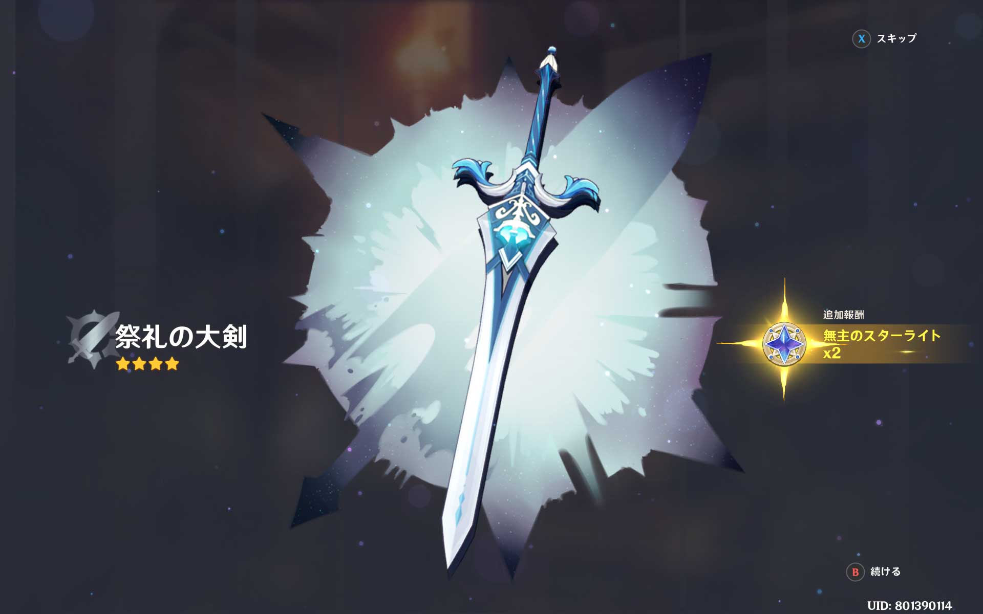 祭礼の大剣は4凸になり、あと1本出てくれていたら完凸だったのに・・・。惜しいですね。