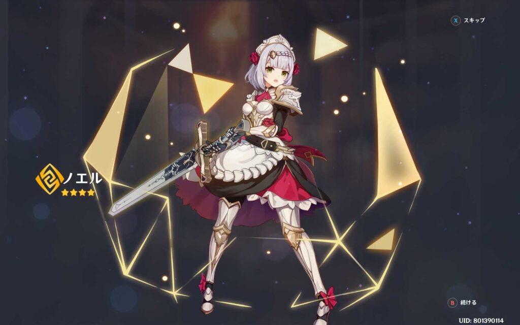 弓蔵だけだと思っていたら、おまけでノエルも出てきました。これで、今回のガチャでノエルは完凸になります。ナヒーダのキャラガチャでもノエルは2体出てきてますからね。