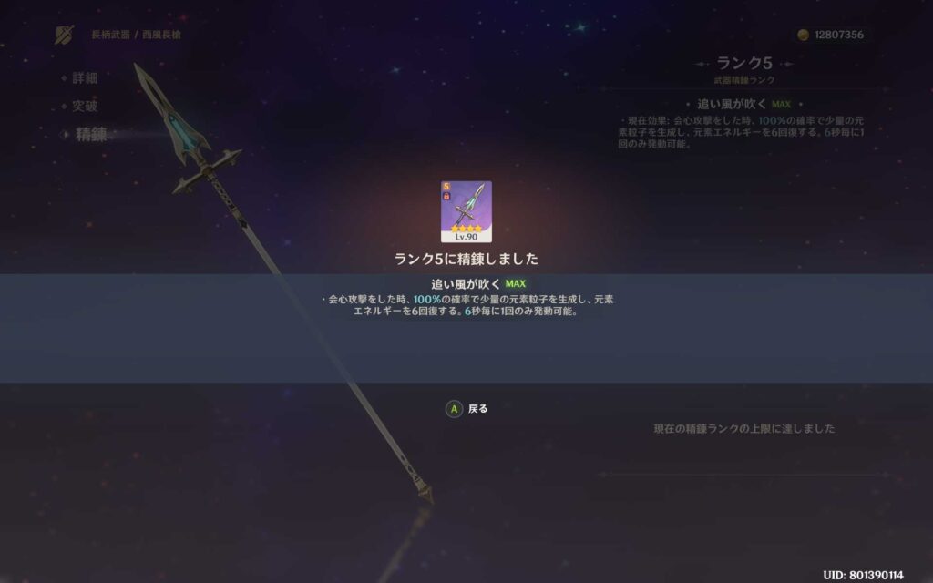 出てきたのは西風槍でした。これで完凸かな?