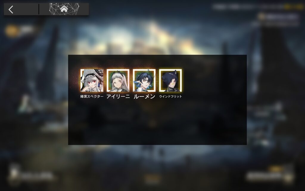 狂人号のイベントでは、帰溟スペクター、アイリーニ、ルーメン、ウインドフリットがボーナスキャラとなっていて、狂人号では信頼度の上昇率が+50%になっています。これらのキャラが引けたドクターは必ず編成をして狂人号のステージ周回をするのがお勧めですね。まあ、星5スペクターを持っているドクターであれば、信頼度は200かもしれないので、育成は不要です。