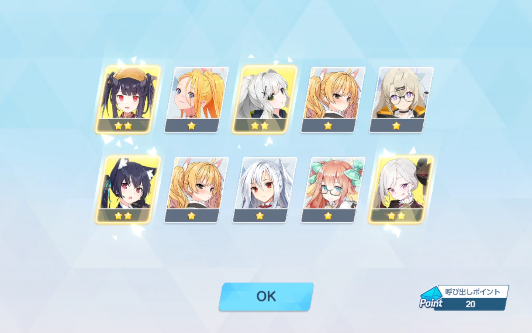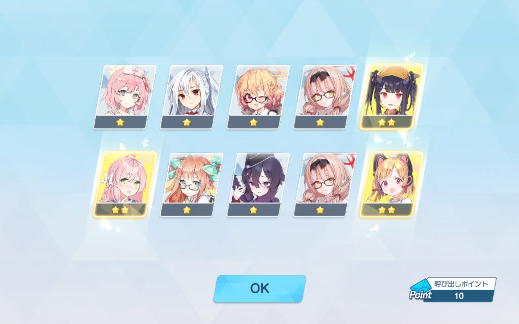 早速、10連目を回してみましたが、ハズレですね。ブルーアカイブではこれが当たり前ですし、仮に星3キャラが出てもすり抜けが当然なので、爆死を気にしてはいけません。