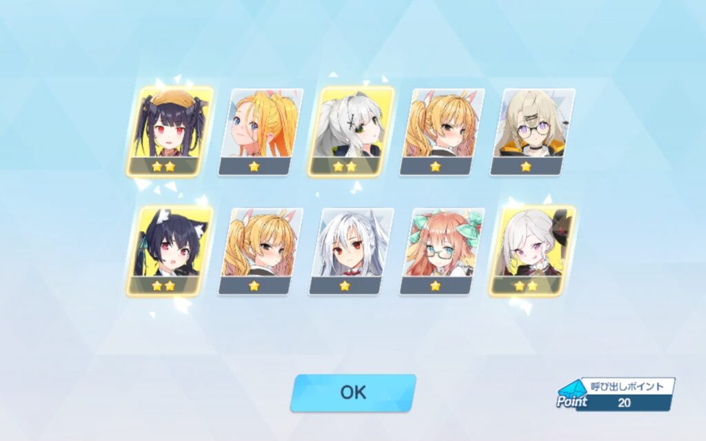 20連目も駄目ですね。星3すら出ないです。これが、天井交換前提と言われているブルーアカイブのガチャですよ!