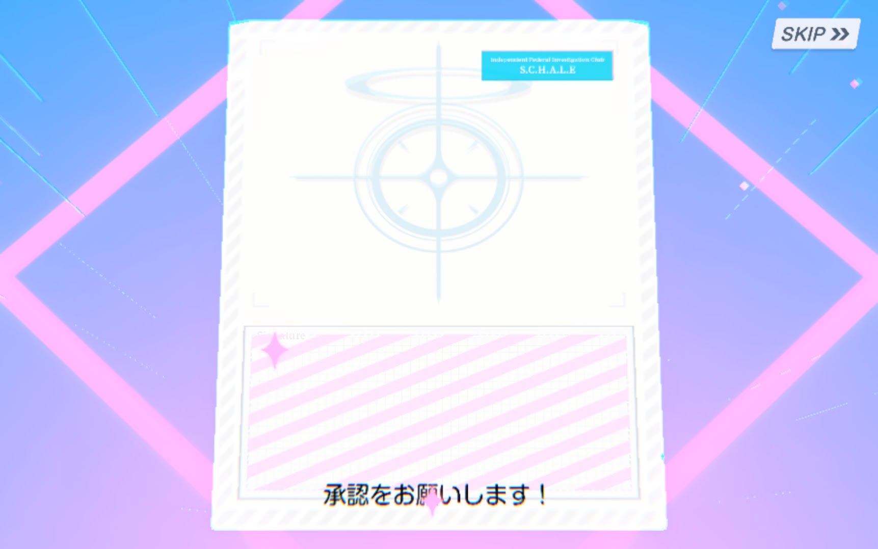 星3確定でキャラは1体のみですね。ブルーアカイブでは昇格演出はありませんので、これで星3が1体確定です。持っているキャラの場合は開いた際に演出は入りませんが、持っていないキャラを引いた場合、所属組織のエンブレムと、キャラのコメントの演出が出るので分かりやすいです。