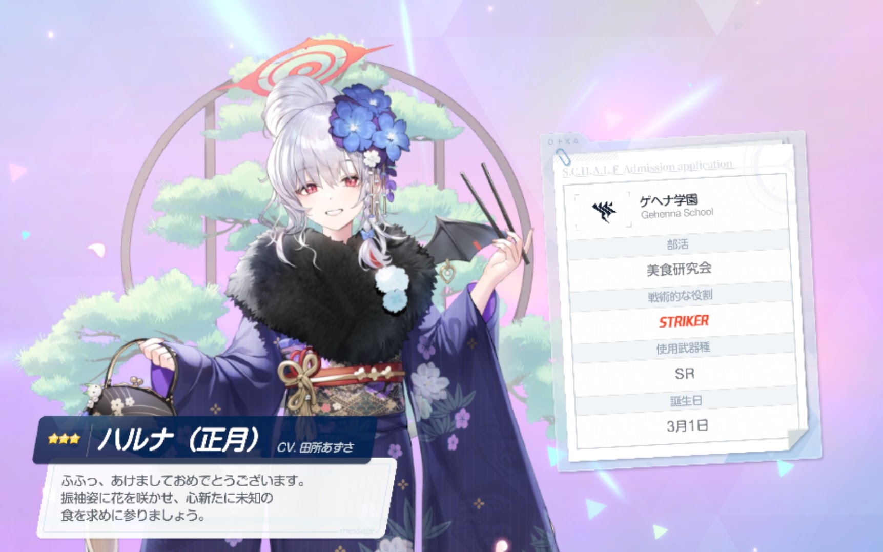 エンブレムは意味が分かりませんでしたが、コメントは完全に正月の限定キャラのコメントです。これは、まさかの30連で正月ハルナが確定か?