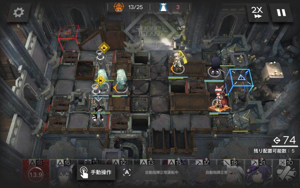 市民の頭の上にあるマークが赤色になるとパニックなるらしく、走って穴を目指して移動し特攻して落ちていきます。しかも、避難もせずに最後までマップに常駐して、こいつが穴に落ちないようにしてクリアしないといけないってギミックっぽいです。これ、全然面白くないんですけど、最近のアークナイツって本当に面倒な作業の繰り返しでストラテジーゲームじゃないです。
