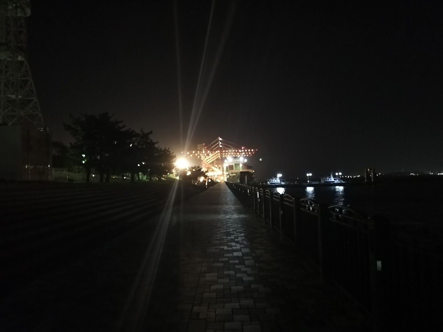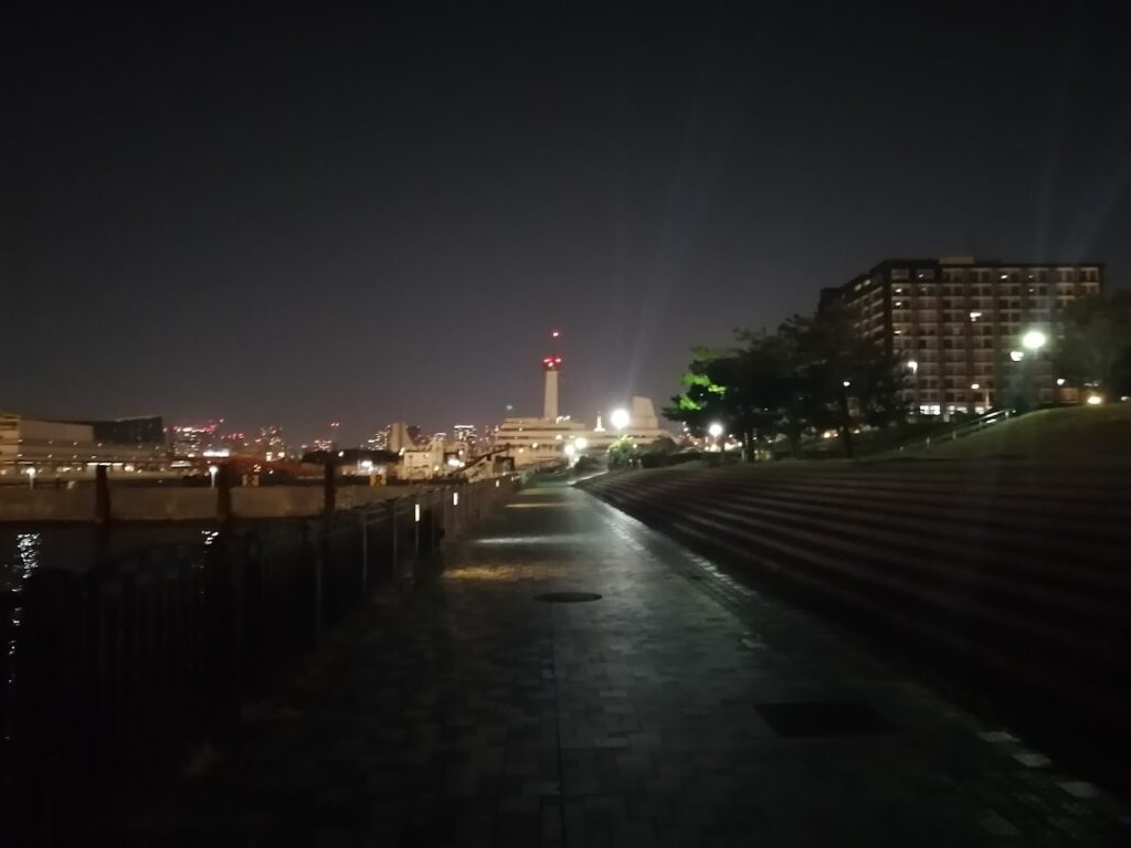 午前中、お昼の時間帯でも、沢山いた釣人は激減していて、夜間になると釣人以前に人が全然いない場所もあります。東京湾クルーズ・ターミナルの近くの公園もちょうどそんな感じですね。以前は、夜間になると夜釣りをする人、この場所で夜景を見ながらデートしている人、違法ですけどドローンを飛ばしている人、等が沢山居たんですけど、最近は全然人がいません。