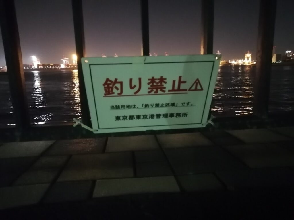 付近を歩いていると、大きな看板があり、釣り禁止って書かれてます。これ、日本語読めない人はどうするんでしょうかね?、以前、豊洲くるり公園でもフィリピン人のおばちゃんがサバを釣っていて、声をかけたら、ここは大きなサバが沢山釣れるので、食料目的でつっているのよ!って話してまして、それで大型のサバが釣れると知り、くるり公園で釣りをやってました。